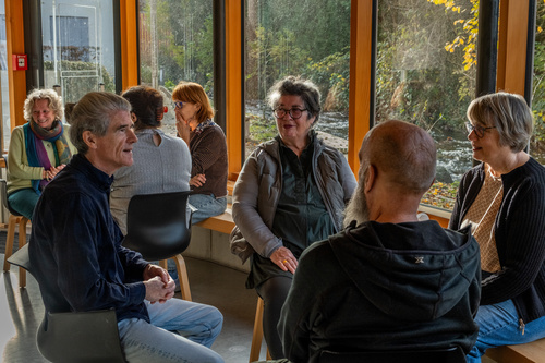 Mit der Frage "Wie geht es dir mit ...?”, öffnet sich ein Raum für Begegnung, Austausch und Vielfalt. Ich spreche von mir, meinem eigenen Erleben. Beim Zuhören bin ich offen für Wahrnehmung und Erfahrung der Anderen. Wir sitzen in Kleingruppen, alle haben dieselbe Redezeit.