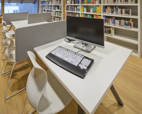 Im Haus erleichtert ein Blindenleitsystem Menschen mit eingeschränkter Sehfähigkeit die Orientierung und auch ein PC mit spezieller Hard- und Software steht im Lernkabinett der Mediathek zur Verfügung.